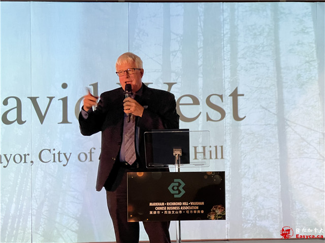 烈治文山市市长David West致词并与副市长陈志辉、巿议员崔冰辉、邵浩然等赠贺倍