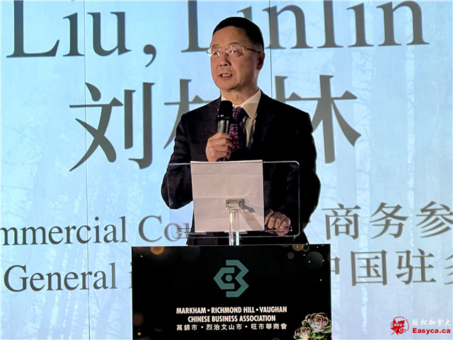 万銱市市长薛家平致词并与万锦区议员李国贤、市议员杨绮清、刘肇麟赠贺信