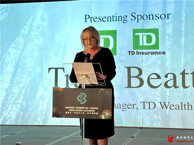 领衔赞助机构-TD代表Tracy Beatty致词并接受颁感谢奖牌