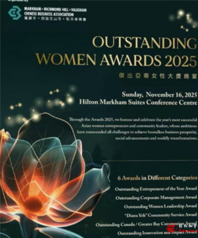万锦列治文山旺市华商会于11月16日晚在万锦市《希尔顿酒店》隆重举办2025杰出亚裔女性大奖晚宴( 2025 Outstanding Women Awards Gala),超过 400 名来自政界、商界、专业界及社区的嘉宾盛装出席,场面衣香鬓影,气氛典雅。今年主题「花.绽放力量」以花朵象征亚裔女性在不同领域绽放的韧性与智慧,为整个晚宴增添文化与象征意义。