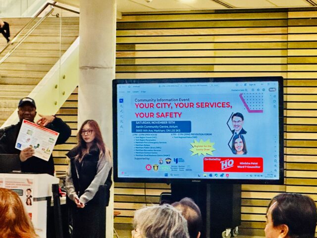 2025 年 11 月 15 日—为帮助市民更全面地了解城市服务并提升社区安全意识,万锦市区域议员 何胡景(Regional Councillor Alan Ho) 与万锦市第七区议员 Nimisha Patel 于11月15日(周六)下午在 Aaniin 社区中心成功联合举办“社区信息日:了解城市服务,关注社区安全”。