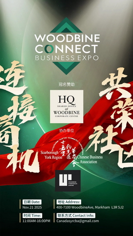 由 Woodbine Corporate Centre 与 士嘉堡约克区华商会(SYRCBA) 联合主办的年度旗舰活动 —— Woodbine Connect Business Expo 2025 已于 2025年11月21日 在Woodbine Corporate Centre HQ(400-7100 Woodbine Ave, Markham)圆满落幕。活动现场气氛热烈,吸引了超过 500 名企业家、投资人、商会代表与社区领袖 共襄盛举,成为多伦多东区年度最具影响力的商业盛典之一。