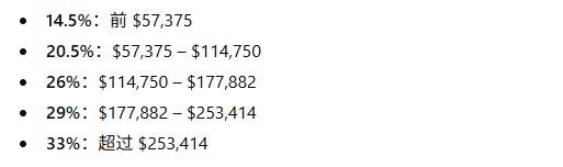 2026年,加拿大5档联邦所得税阶均按2%通胀率上调。