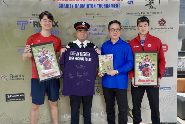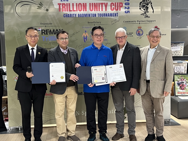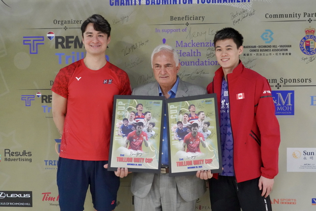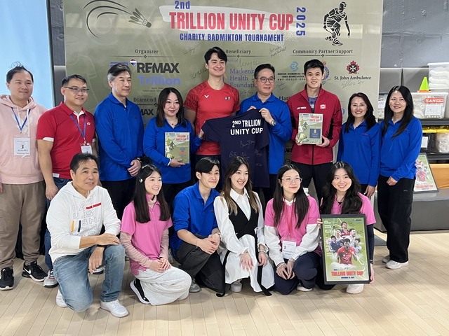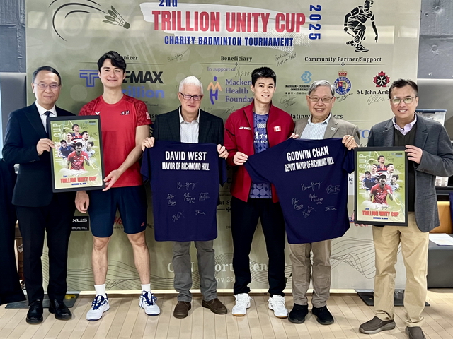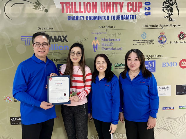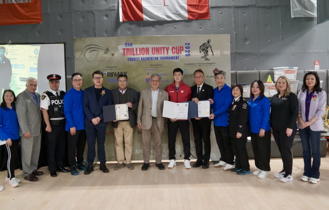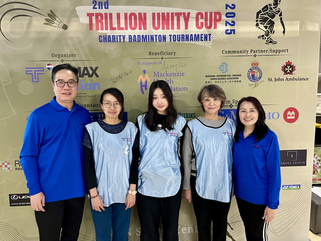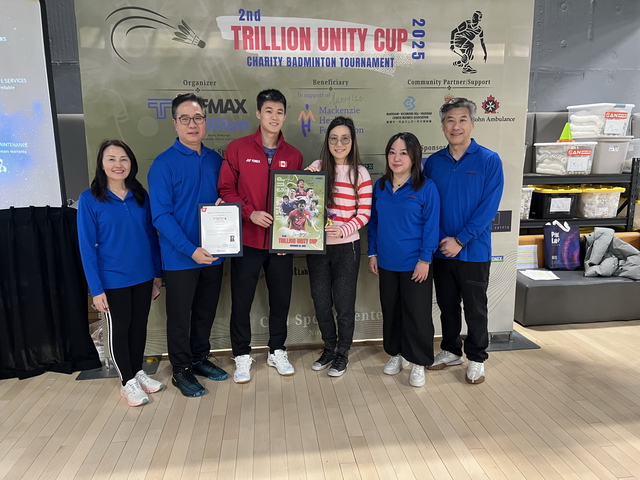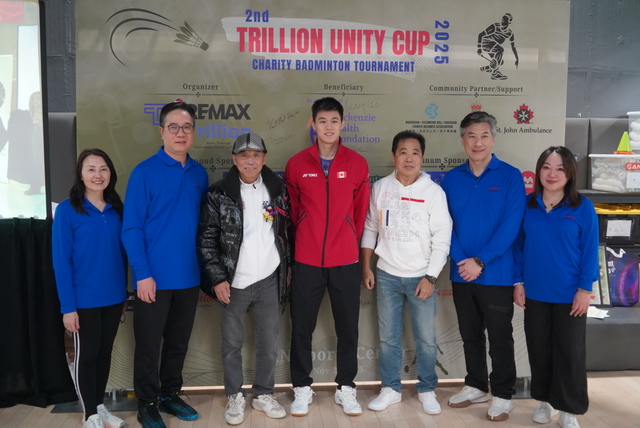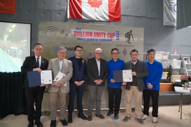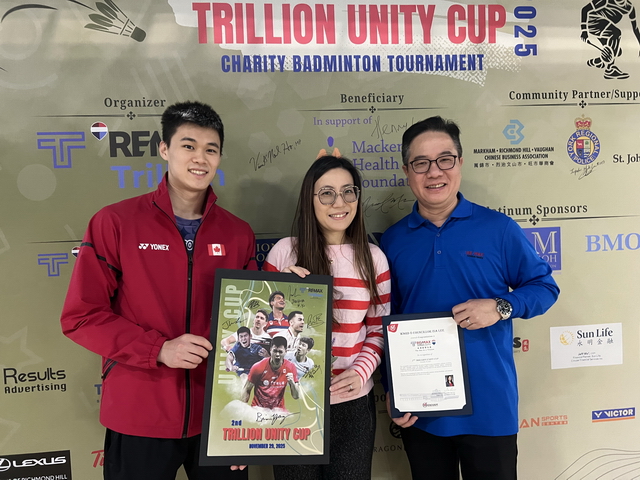 由 REMAX Trillion Realty 主办、万锦市、烈治文山市、旺市华商会(MRVCBA)协办,受惠机构 Mackenzie Health Foundation 的第二届慈善羽毛球比赛「Trillion Unity Cup」,已於 11 月 29 日上午 9 点至下午 5 点在万锦市的CAN Sports Center 圆满举行。活动汇聚超过 200 名羽毛球爱好者,包括加拿大国家队顶尖球员及教练,共同为社区带来精彩赛事,并为 Mackenzie Health Foundation 筹集善款。今年更加超越上年筹款数字,共筹得 $28,888。