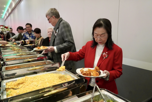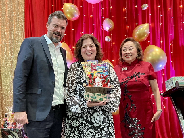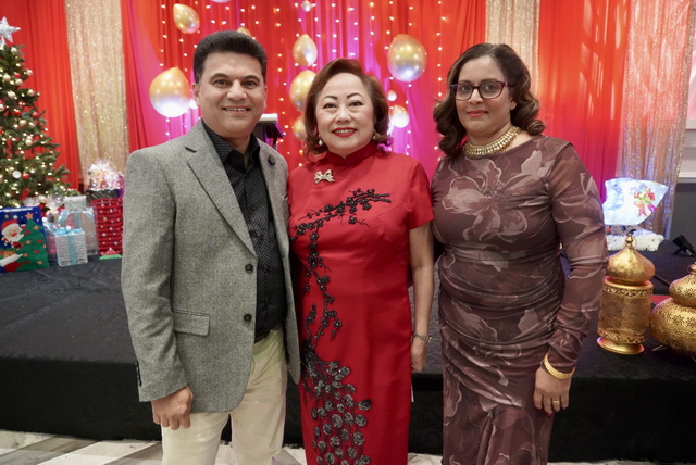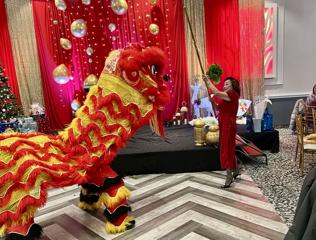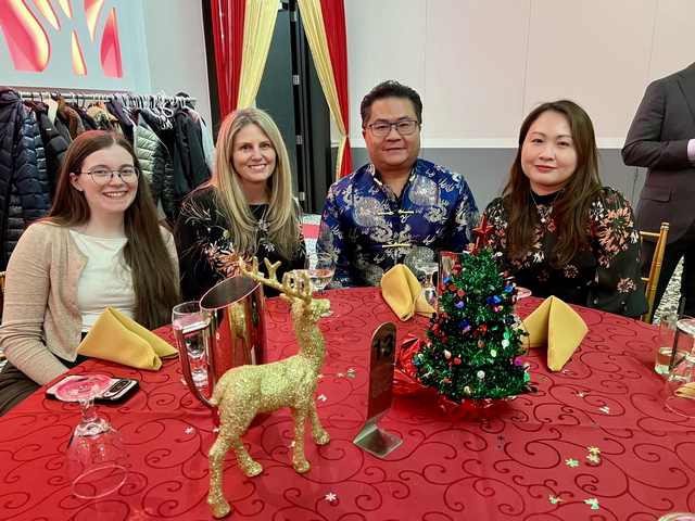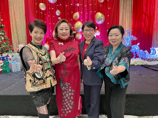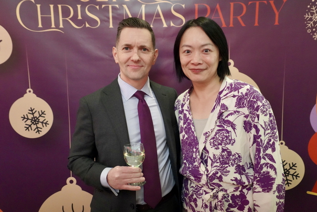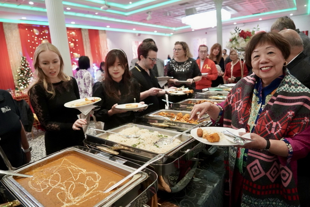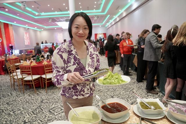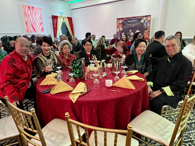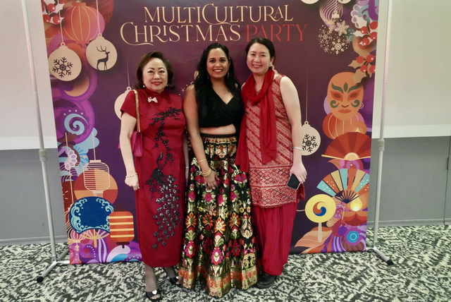 圣诞派对气氛欢乐、多族裔宾客杯酒交欢,除享受丰盛美食外、并欣赏了多元文化的歌舞表演及幸运抽奖助兴,适逢简慧儿寿诞日、大家同为她庆生祝福。