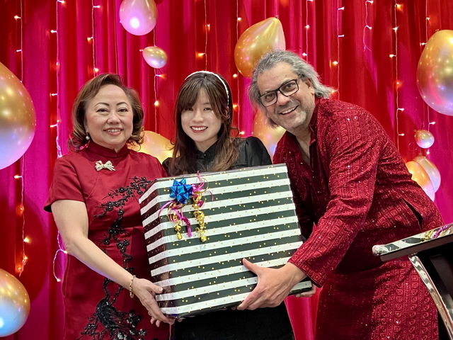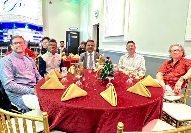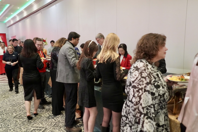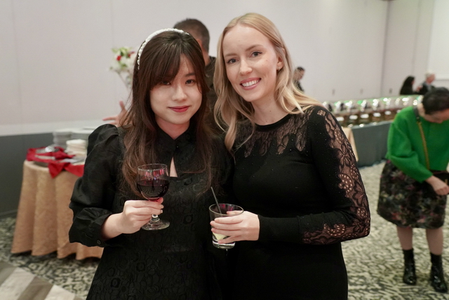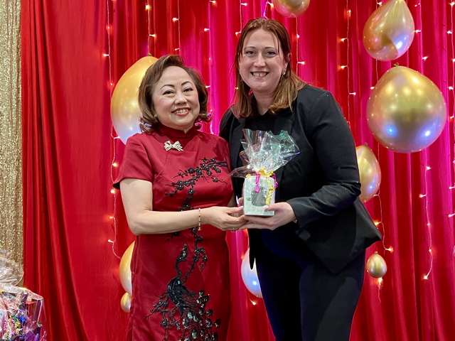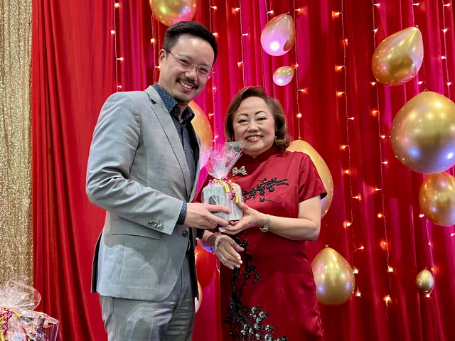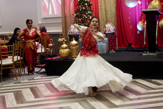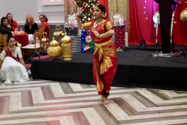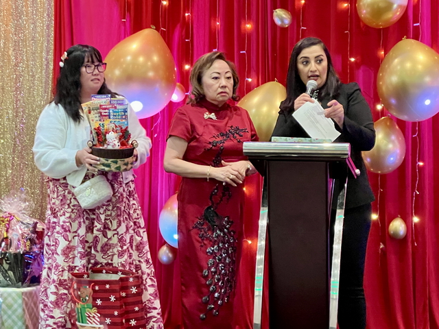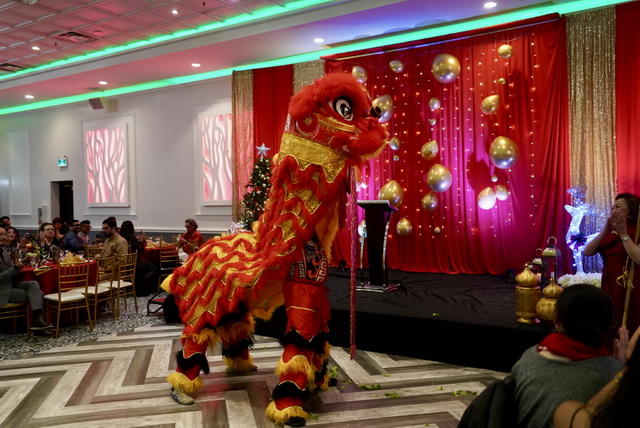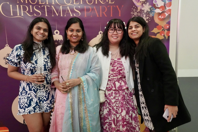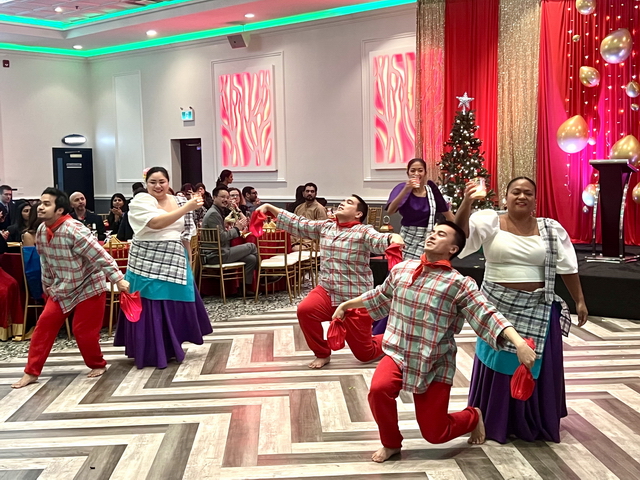 圣诞派对气氛欢乐、多族裔宾客杯酒交欢,除享受丰盛美食外、并欣赏了多元文化的歌舞表演及幸运抽奖助兴,适逢简慧儿寿诞日、大家同为她庆生祝福。