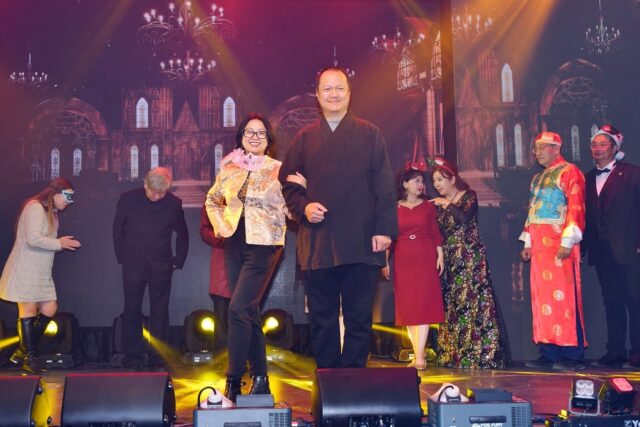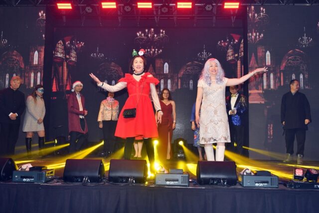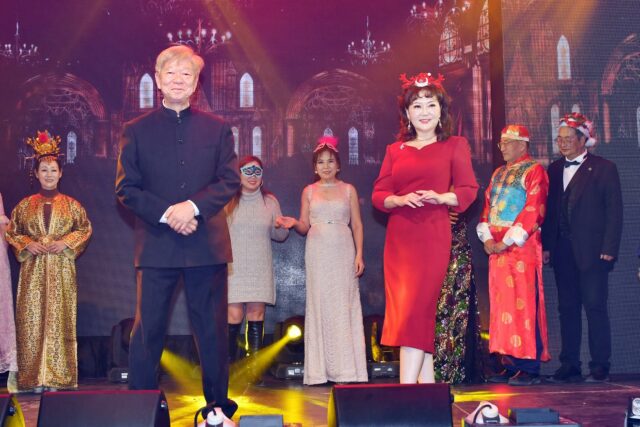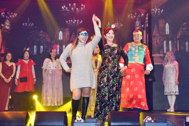 万锦市议员杨绮清带来活力四射的《潇洒走一回》,总会理事们和众多来宾自发上台伴舞,现场气氛热烈欢腾。