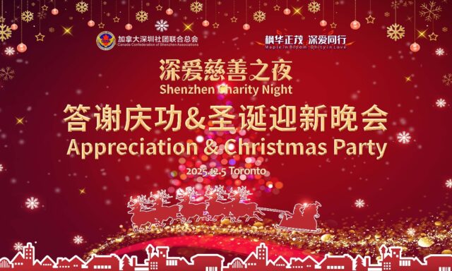 2025年12月5日晚,加拿大深圳社团联合总会(Canada Confederation of Shenzhen Associations)在列治文山D&H Show Production隆重举行“枫华正茂·深爱同行——2025‘深爱慈善之夜’答谢庆功暨圣诞新年晚会”。活动旨在回顾并感谢社会各界对9月19日成功举办的“深爱慈善之夜”暨总会九周年年会的大力支持,并借圣诞和新年来临之际,与嘉宾和总会理事们共贺佳节、共迎新年、共叙情谊。当晚,近二百位政要嘉宾、社区侨领、赞助商代表、演员、义工及媒体人士和总会理事会同仁们欢聚一堂,在温馨喜庆的节日氛围中,度过了一个美好欢乐热闹开心的夜晚。
