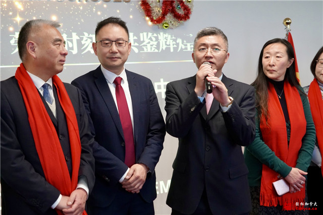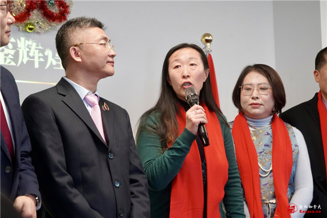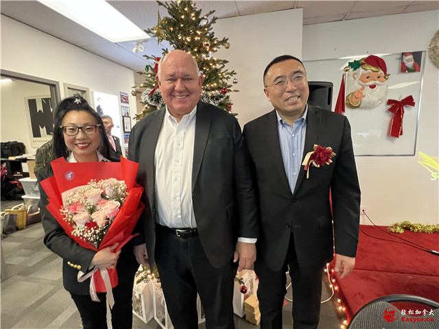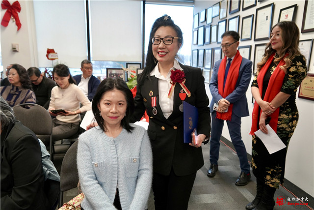 万锦市市议员李思韵、烈治文山市市议员崔冰辉分别致词并与万锦市市长薛家平同赠贺信