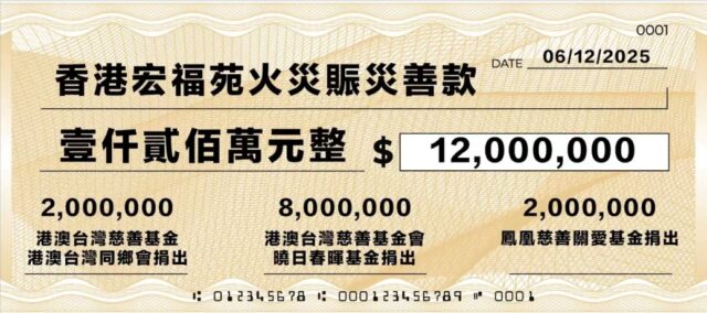 典礼现场同步发起善款捐赠仪式,港澳台湾慈善基金会、港澳台湾同乡会联合捐助200万港元;港澳台湾慈善基金会-晓日春晖基金募集800万港元;凤凰卫视通过凤凰慈善关爱基金捐赠200万港元,三方爱心力量汇聚成总额1200万港元善款,用于支持大埔宏福苑灾后重建工作,以实际行动践行“爱心水滴 汇流成海”的公益理念。这份来自海内外公益力量的同心协力,不仅是对受灾居民的紧急援助,更为“爱心奖”传递善意、凝聚众力的公益使命增添了生动诠释。