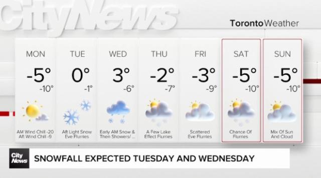 在这两股风暴过后,多伦多本周末可能迎来本季以来最冷的空气。