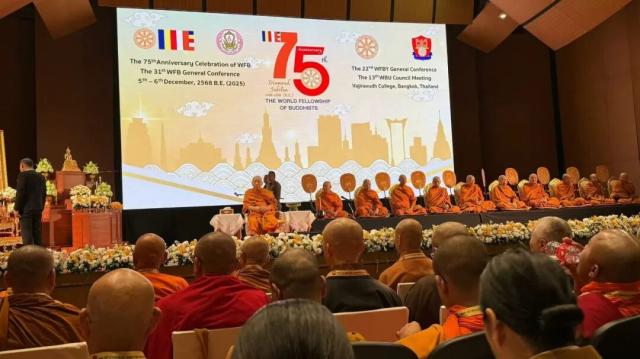 12月6日,应世界佛教徒联谊会(World Fellowship of Buddhists,简称WFB)邀请,加拿大佛教会会长、世界佛教徒联谊会副会长达义大和尚率领加拿大佛教会代表团,在泰国出席世界佛教徒联谊会成立七十五周年庆祝大会及相关系列活动。代表团成员包括加拿大佛教会加国五台山上座部负责人、加拿大佛学院教务长Mudita尊者,Bodhicitta(菩提心)法师等五位成员,共同参与此次国际佛教盛会。