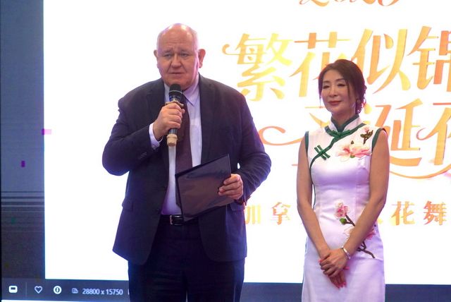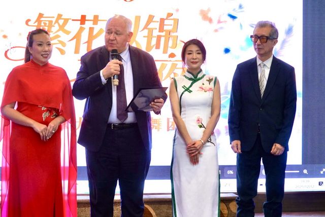女人花舞团团长熊鹰女士登台发言,向莅临现场的嘉宾、演员、义工致以诚挚谢意,并表示舞团将继续深耕文化艺术领域,以艺术为媒,传递中华文化魅力,增进加中文化深度交流。