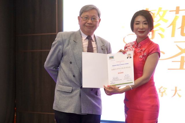 万锦市市长薛家平致词并与副市长陈国治,市议员杨绮清赠贺信