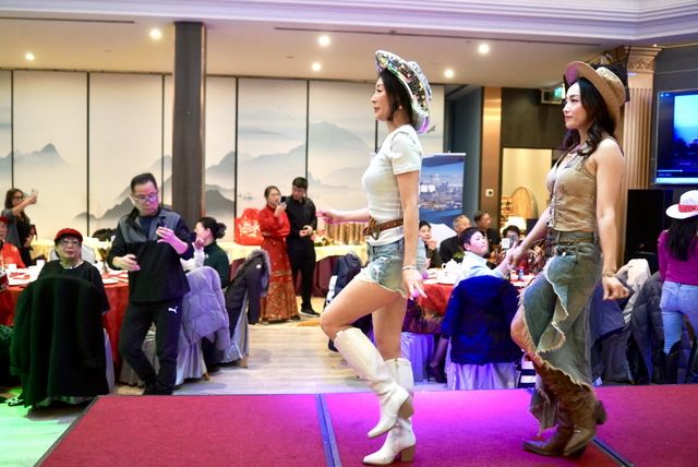 晚宴在活力四射的“狂野西部牛仔”开场秀中拉开帷幕,瞬间点燃全场热情。烈治文山市议员崔冰辉自弹自唱《挡凉》,醇厚歌声赢得阵阵掌声;加拿大国标拉丁舞十项冠军Ivan Pivovarov & Ms.Mimi Star带来专业拉丁舞表演,舞步利落灵动、默契十足,尽显冠军风采;杨绮清议员倾情献唱经典曲目《女人花》,舞团成员身着华服伴舞,歌声与舞姿相得益彰,将现场氛围推向小高潮。