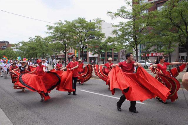 接着走过来的是欢乐的斯里兰卡 罐舞队,英姿飒爽的西班牙斗牛舞队^个个舞者表演得维妙维肖。我们要表达的不仅是一种舞蹈艺术,我们要表达的是对加拿大多元文化的尊重,各族裔和谐相处的颂扬,人们融入加国社会的追求……