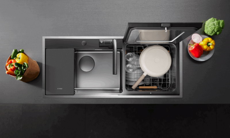 水槽洗碗机,大部分人选择它是迫于无奈,厨房太小,实在腾不出位置安装独立式洗碗机,又不愿意被台式洗碗机占用橱柜台面的空间,水槽洗碗机把水槽和洗碗机设计到一起,对小户型来说的确是一种很友好的设计。