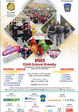 密⻄沙加華商會 (MCBA) 主辦的2023年警⺠同樂⽇,將於10⽉1⽇ (星期日) 在 Mississauga Celebration Square (密⻄沙加市市府廣場 – 300 City Centre Drive)盛⼤舉行, 届时三級政府官員將會出席。 活動內容如下: