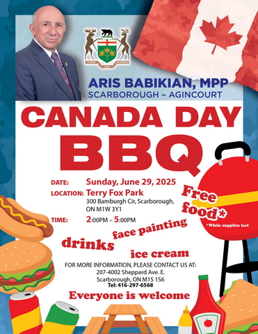 与MPP Aris Babikian共庆加拿大国庆日社区BBQ同乐日